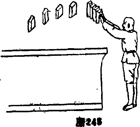 石块(图245)。这功夫最难练习须三十年苦功方可见成效。在此只作一提不作详细解释以待少林正宗神功一书上再作细论。