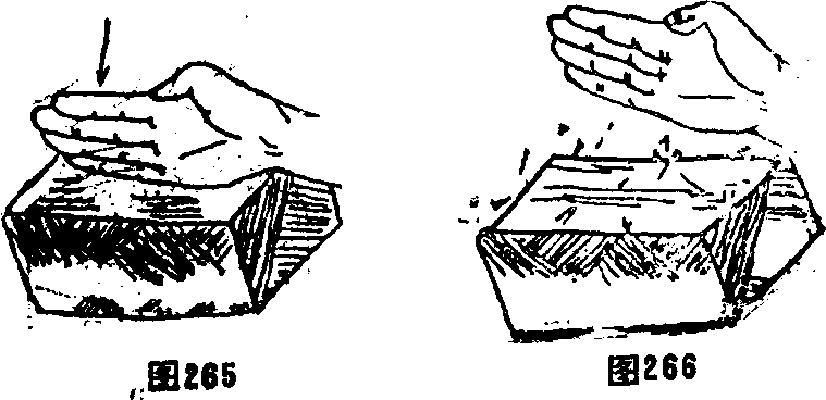 8 再砍铁屑六年后砍掌提起后铁屑仍然有向两边(旁)排开之痕(图269)。