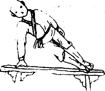 卑上竖起两足合并使身体笔直。然后两手慢慢离地附