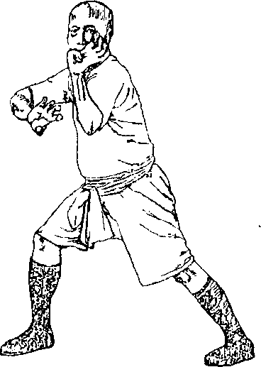侧面虎爪简称侧面虎其势为立于午马百弓左箭步两爪右扒左划右手横睁1护胸左手竖脖对膀见虎鹤双形拳中之右手破排-式(图33),(图33)一广州〃时部之工着抬此则叫左破排(图34),亦是侧身虎爪-(图34)功用此势主练侧身擒拿划面之功属高势虎爪一类口练法先以手指反复抓铁砂包待手指稍硬后即可进入定式练习至内功白觉饱满时便可练打木人桩以一户擒臂一手划面。