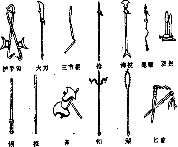 十八般兵器图见(209页)。