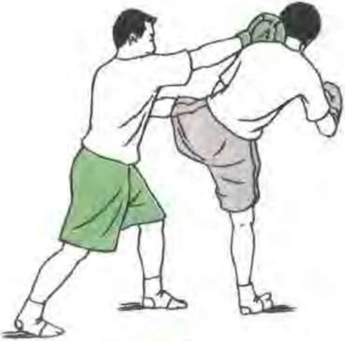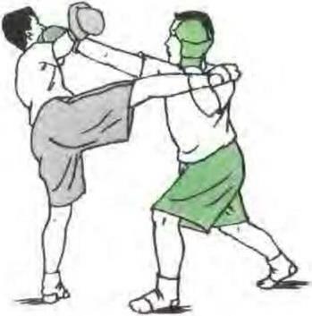 (7)防前踢腿双方对峙对方发前踢腿踢我腹部我随即用一手臂下压另一手出直拳攻其头部破解其进攻。(图81)