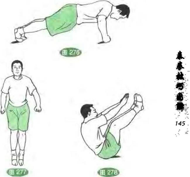 蹲跳、仰卧起坐这些都是力量训练的有效方法。(图276、277、278)