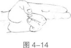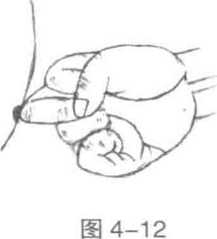 五指握拳独将食指中节突出拇指紧扣食指此手法叫做凤眼捶是最灵便的点穴拳形。(图4-13)