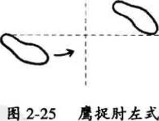 之三跟上成左鸡步要头顶项竖下颊内收闭口扣齿舌顶上腭眼顺左肘前视为鹰捉肘左式。02-26)2值捉肘右式盘练法接上式不停提右足成左独立势重心在左腿上但左跟上成左鸡步要头顶项竖下颊内收闭口扣齿舌顶上腭眼顺左肘前视为鹰捉肘左式。02-26)2值捉肘右式盘练法接上式不停提右足成左独立势重心在左腿上但左继而以右脚为支撑点左足向前踏出落地后五趾抓地足心含空成隼(音,指斜的支撑)柱步(图2-25)接着身体向前用肩带动往前曲臂成肘左掌变拳右掌握住左腕往左胸