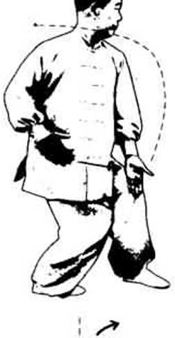 当式子练习到尽头时如果正好是左手左足和左肩在前此时回头后视两足跟离地欠起用两脚