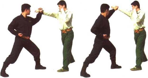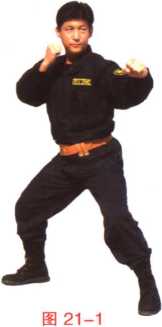 以左手为例当敌左脚在前用右直拳击我面部时我撤右步左臂屈举用左小臂由里向外格挡敌右小臂(图20-1),同时左手成鹰爪形握其右手腕(图20-2)。