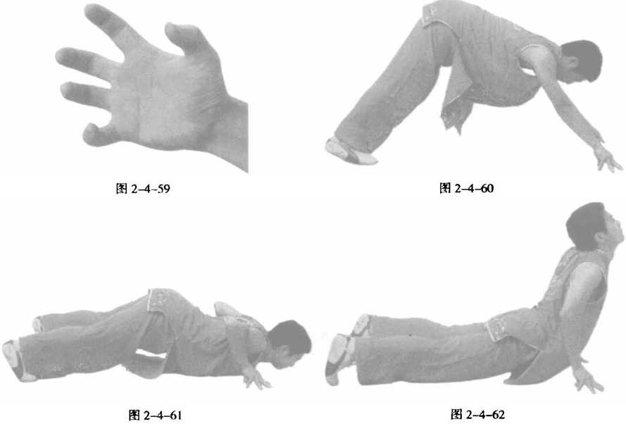 8585心劳宫穴。然后吸气伸臂挺腰身体尽量向后弓挫臀部向后突身体亦随之后移恢复原来姿势。吸气同时意念内气从手外侧返回丹田。如此前探后突循环往复力尽为止见图2_60?图2-62。