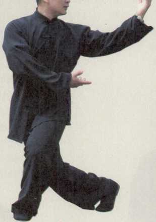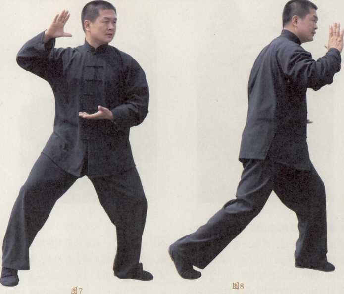 少林拳的真髓是圆、是滑、是柔。拳谚滑如游鱼柔若无骨。六合功以沉浮进退圆转周折为身法之纲要。上下、左右、前后、内外点、线、面以面顾体再以体、面、线、点去分析局部的合。功至上乘者行功时身法轻盈自然好似浮于水面。换式时阴阳互化沉似蛟龙闪电般潜于水下浮似青龙出水游行于寰宇(图7-9)。