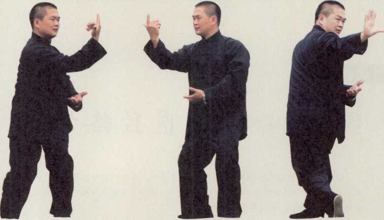 手转时手心要空意注劳宫穴。手法的转与步法的转是相同的讲究阴阳相合。在自转与公转中体悟阴阳变化之道。太极分阴阳阴有少阴、厥阴、太阴阳有阳明、少阳、太阳。手法向里转即是少阴一厥阴一太阴的过程这个过程是公转至太阴时阳明出现这时自转阴盛及阳。向外转是阳明一少阳太阳的过程(图5-7)。如此阴阳相济。了解手法的阴阳太极变化之道能更清晰的认识公转与自转的关系。法从手出手随心转转则经络通气血旺。