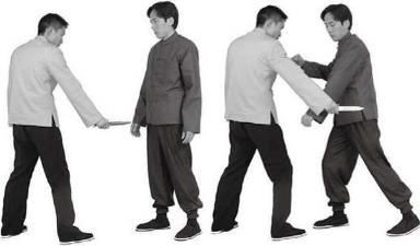 用于夺取反握匕首下刺腹或裆部。