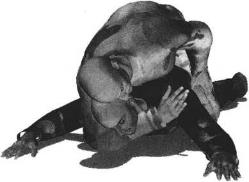 2、 以右臂臂肘扼勒对方的咽喉气管时左手反方向施加压力配合头部的抵压会使扼绞更加具有威力这绝对是一种致命绞杀技法。