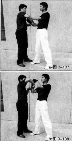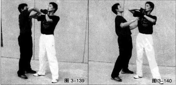 我须尽量贴近敌方并用右肘向上挑击敌方的卜巴(图3-139)