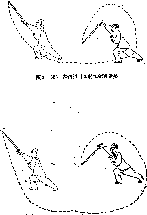 5转翻剑进步由探海势作翻剑『低首挺身?进步翻身缠格变庠旗势为九转之5°