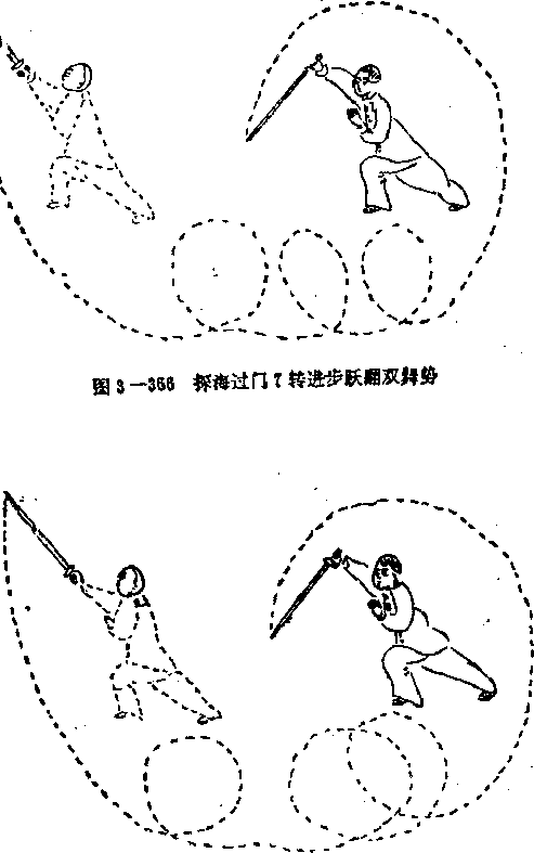 3转匚翻剑进步由探海势作翻剑低首挺身进步缠格变索旗势为九转之3,