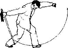 右手握剑缢上方、左方下方向体右后下方撩剑捌