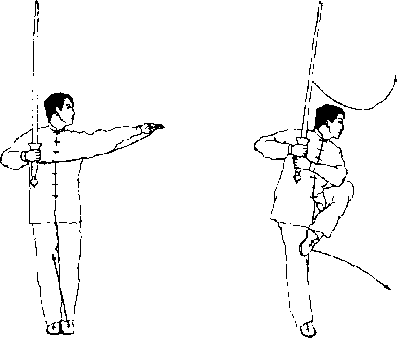(3)两臂自然垂于体侧微微屈肘左手持剑剑身平贴紧