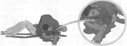 技术要领左臂圈锁要紧手刀别腮要有力度。整个动作过程中右手臂要始终牢牢控制住对手的右手臂。在实施搬倒对手的过程中要注意周身整体发力圈臂、夹颈、转身、下沉动作连贯一气呵成。跪地折拿对手手腕时双腿膝盖一定要控制住对手的身体防止其滚动、脱解。