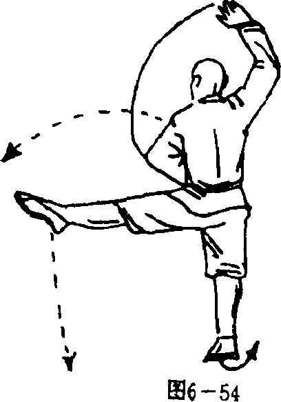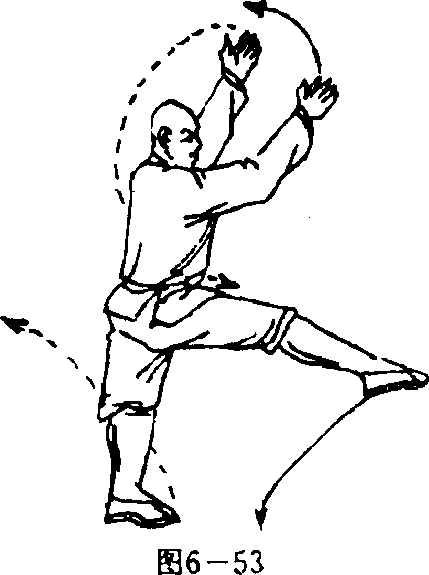 前上方两掌心斜相对掌指斜向上。目视前方(图6—53)。