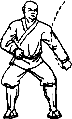 上动不停两脚龈地体右转180°,两腿成右弓步同