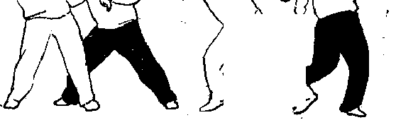 上动不停敌必回挪,我则落步趋进。以二左脚踹敌腹(图1—35)