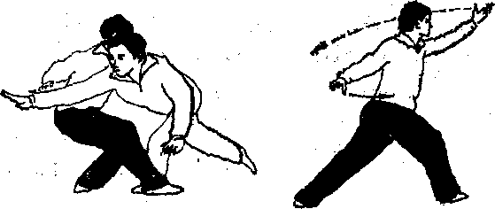 重心猛然回坐成屈膝丁字步左脚尖内扣同瞪