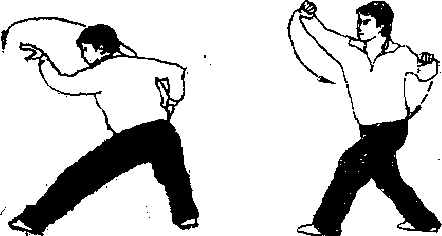 (1)紧接上势上体后转以左手向左前方擒拿(图2—24)