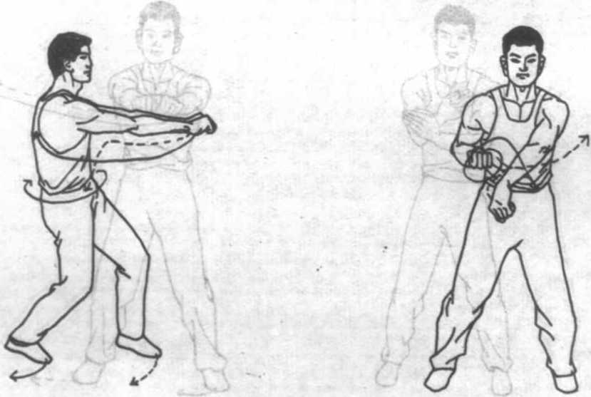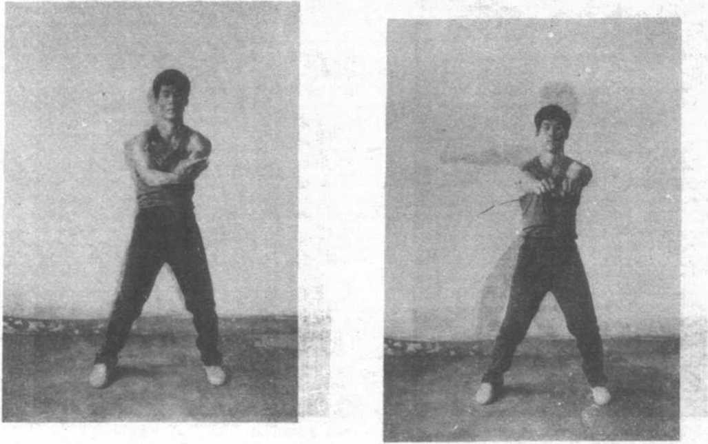 179两掌向外翻掌心向内变拳收至两胸侧要求练习先向左打出后依法改向右打出作伏手与割手时动作要缓慢讲求手腕的柔韧性180钳羊马势两拳紧贴两胸侧出至心窝处归肘接着臂内旋直得向前打出拳背向上拳眼相对,与心窝同高181上体左转90。成二字钳羊马同时两臂伸直陨转体之势向左摆出串眼相对与心窝同高、 182上体右转90°成钳羊马同时左胃弯屈收至心窝处归肘接着愣内旋向腹前插出,拳眼向右下方右拳收至右胸侧