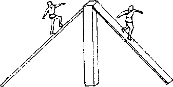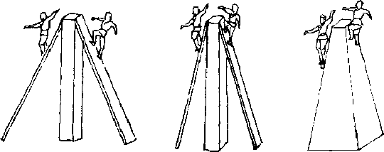 用长木板斜塔在木柱上形似道桥木板斜25。可以身穿沙衣腿带沙袋沿木板往跑再从上边跑下来口跑半年后逐渐向上竖起木板增大木板的斜度(图364)