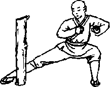 2 在经常走的路上埋栽木桩或在距离略远处埋栽数报木桩来回山人用腿横扫木桩先用前扫腿扫击木桩(图11)
