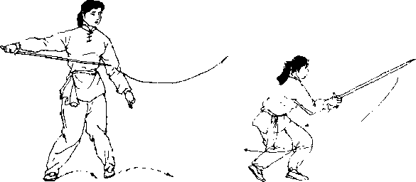 要点两臂合拢截击与左脚提起动作要协调一致不可松散剑尖斜向下剑身与两臂成一斜线口