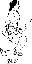接前势两手迅速向左右分开手心仍朝上着两臂与肩平身体不动眼看前方口(图32)