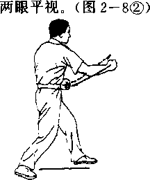 右拳前冲拳略同胸高拳心朝左,左拳收于腹前拳心朝右。两眼平视。(图2—81)
