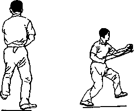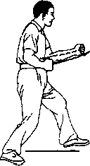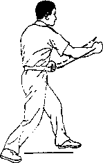 (3)右拳前冲拳略同胸高拳心朝左,左拳收于腹前拳心朝右。两眼平视。(图2—83)