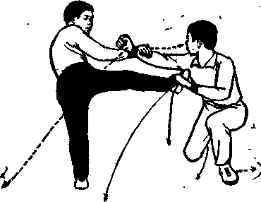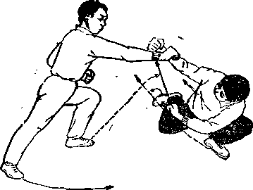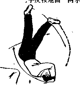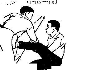 (1)乙松手甲身体后倒仰卧两腿屈膝两手反按地上。乙两腿伸直上顶后压肩背着地两手反按地面两掌附于头旁。(图-77) 、、