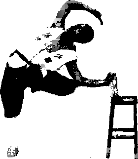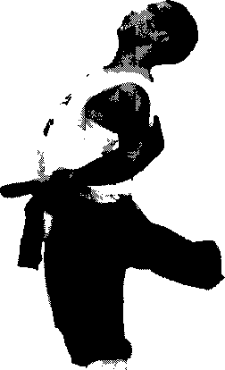 身体背对支撑物站立两手叉腰或扶一定高度的物体左腿支撑右脚尖放在支撑物脚面绷直上体后屈并做压振动作(图16)。练习时,左右腿交替进行。
