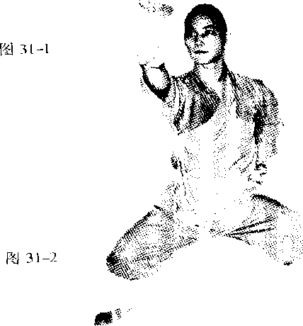 两脚左跳才脚先左脚落地双腿下蹲成马步左掌变拳两掌由膝盖处收于腰间拳心向,11,0视前方(见图31-)马步不变右拳内翻拳心向葭向前冲出,臂与肩平图31-3巧步不变右拳收于腰间拳心朝,同时左拳内翻拳心向下向前冲出(见图31-3)二左拳收于嗖间拳心朝上右拳内翻拳心朝下向前冲出视前方(见图31-4)图31-3要点力达拳面,去十个脚指抓地二