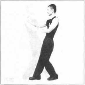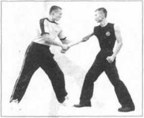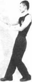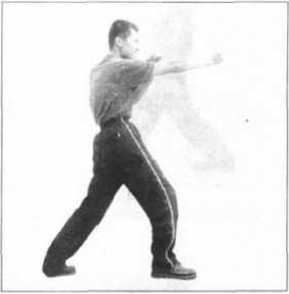 再跟进后脚不同的是咏春拳步法之后脚跟(扯)进动作可由此产生一股强大的整体的向前的冲撞力而不似西洋拳般只是把力量集中在两只拳头上。