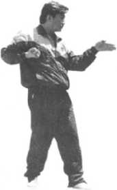 依上势右拳化掌黏模左肩拖回至右肩前同时左豹拳变阴掌以肩、肘、腕促劲向左方标出(见图362)