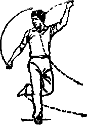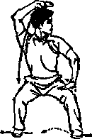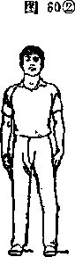 图盹1右脚经左脚前向左脚外侧盍跳步左脚撩于右腿后俯右拳向右下方婵出3左掌变拳向外向上绕立圆半周于体前』眼随右拳(图601八左脚向左侧迈步成马步,同时左拳变掌向右、向下划瓠接掌于左膝上右拳变掌由右恻向上翻腕亮掌于前额斜土方『同时摆头向左平视(图602工6收势左脚收半步与肩同宽起立,右掌下落两臂自然垂于体侧『眼向前平视(图61),(三)动作路线示意图(小红摹)(1)动作名称