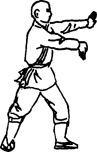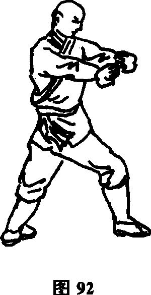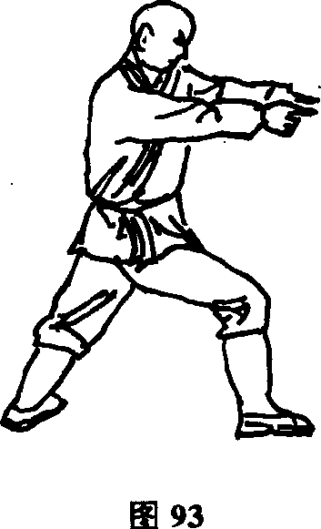 喉头开音发龙吟之声同时剑指向前伸出(图93)。