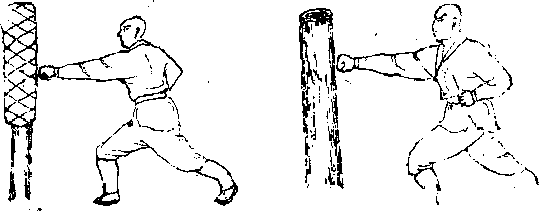 棉桩四尺长,站定弓步势,平臂击上把,耕下揣下把,两行珈击三百把,