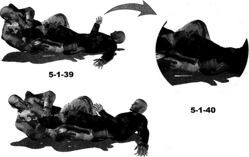 向前蹬推自己左脚从而加大锁控力度(图5-1-41)