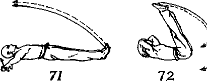 ① 右腿屈膝右脚收至左膝上左脚全脚着地身体微左转右手变拳收至头部右侧左手向左划抓眼看左手(图69)。② 提腰、挺胯右肘和左脚支撑使身体离地,左手屈肘收至头部斜上方?眼看左手(图70)要领左脚用力蹬地身体顺力侧身挺起重心要适中