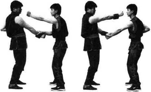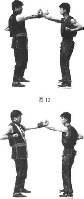 图13图13也称为偏身拳(包括偏身大钳阳马)在开大钳阳马的基础上结合马的转变使整个桥手变长同时也使自己的目标变小这样可使咏春善用短桥的桥手变长造成对方处于很被动的局面更重要的是练就了坐马、转身使腰马桥得到合一的训练。