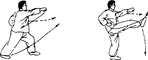 动作提要弹踢落步后两掌在胸前枪搜一圆护顶冲拳要和卜蹲歇步一致左拳要从体外侧上架