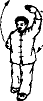 上动不停左掌在头上方左摆至身后变勾手勾尖向上右