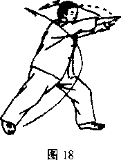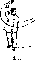 堂从后向广摆于头上方成横掌目视左方。(图17)