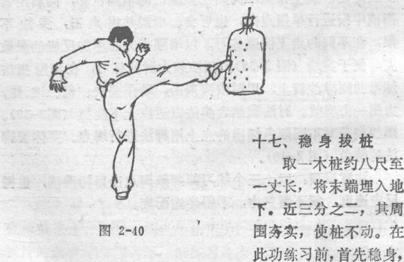 围夯实使桩不动。在围夯实使桩不动。在2-402-40此功练习前首先稳身,意守丹田片刻而后缓缓伸出手,以五指扣住桩的顶端极力上提(图2。刚开始木桩不会动随练习之日久