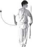| 1.并步站立立抱刀: | 并步站立。右臂微屈, | 自然下垂,指尖向下,掌心朝内;左臂微 | |